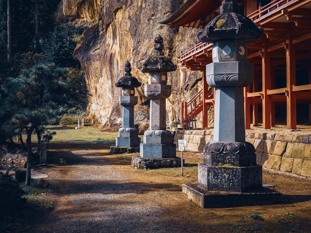 離開嚴美溪後,大約十分鐘的車程便到了達谷窟毘沙門堂。