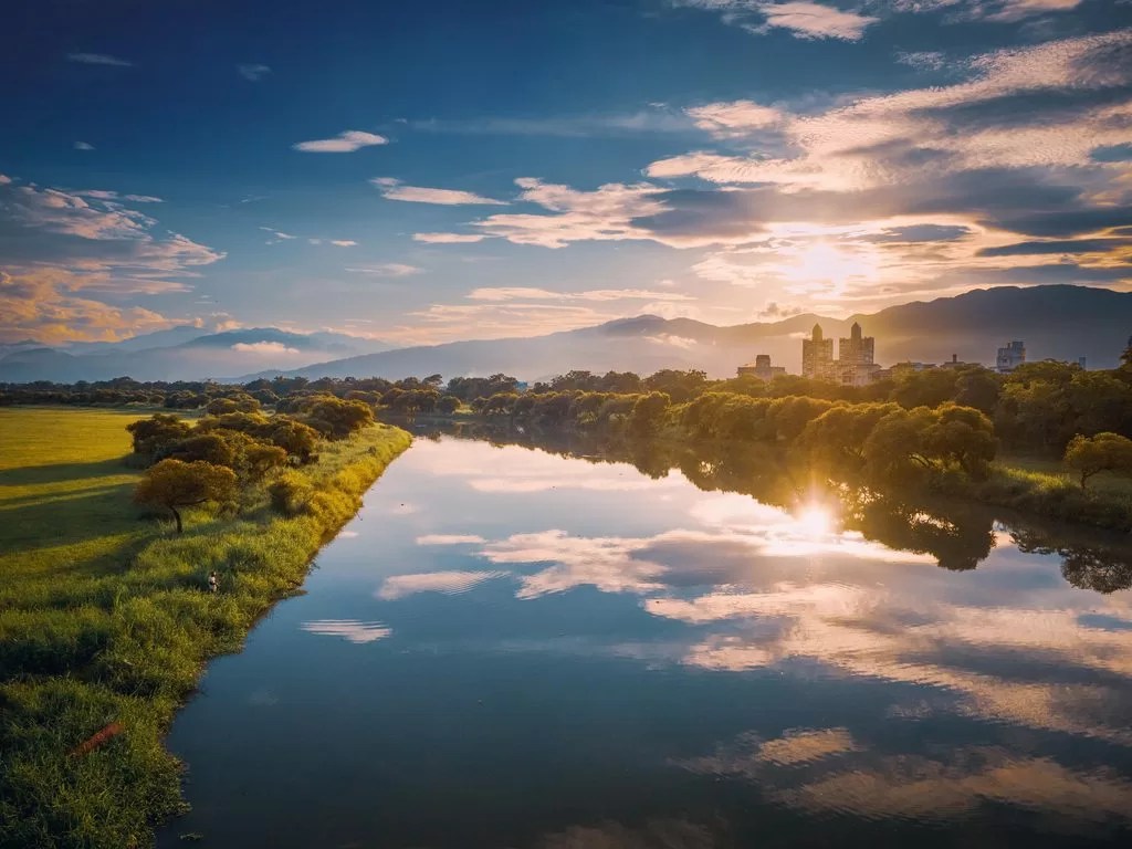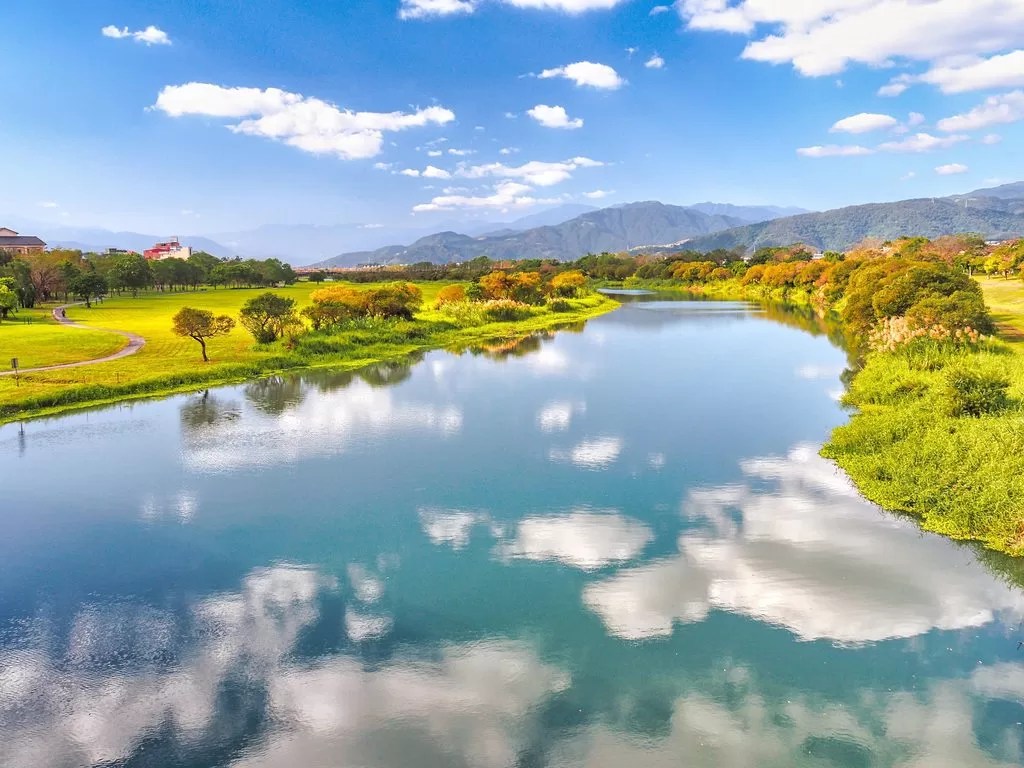 當風平浪靜的時候,平靜的宜蘭河水映照著天空雲影,不同的時刻不同的色溫也映照出不同的風情。