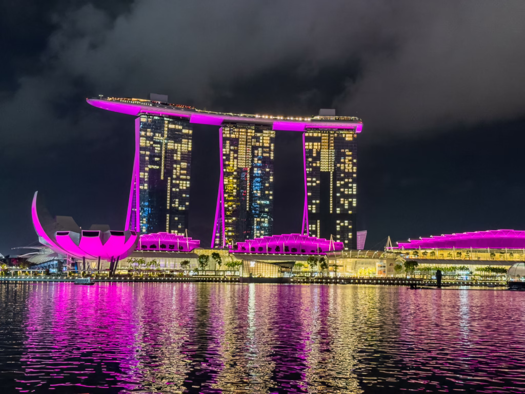 從天空樹的縫隙看過去,新加坡最著名的金沙酒店更是遊客追逐的焦點,也是影視動畫的指標性建築。空中超大範圍的無邊際游泳池,更是金沙酒店最引人注目的一項特色。