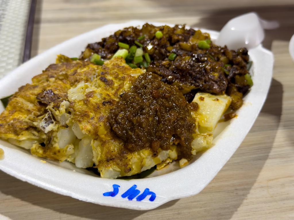 這些菜頭粿,是將我熟悉的蘿蔔糕切成小塊,加入但與菜脯拌炒。還有黑白之分,黑的是炒當地的醬油,白的丟是單純用蛋和菜舖拌炒。然後最有趣的就是,如果想吃沒有切過的完整狀態,在新加坡就稱呼為“蘿蔔糕”。