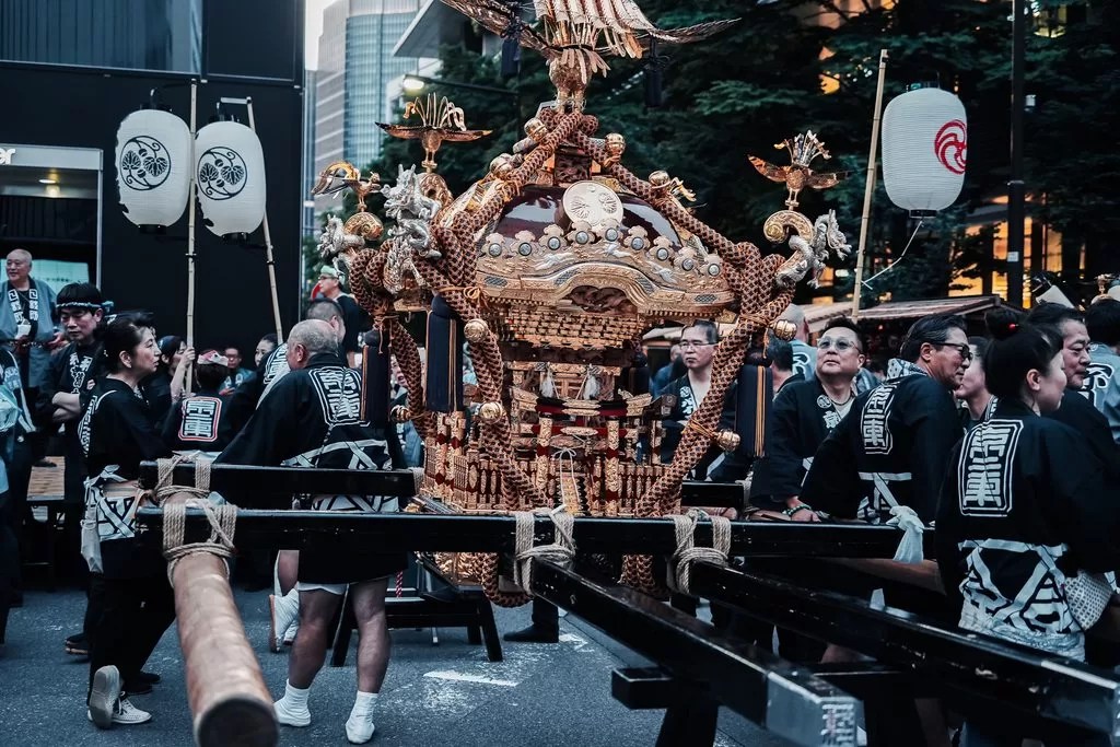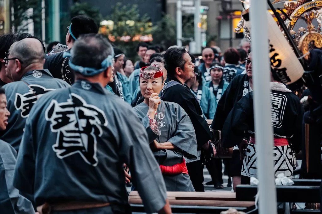 在摩登現代的商業區,遇上了傳統江戶時代的祭典隊伍,這也是日本這個國家獨特的魅力吧。