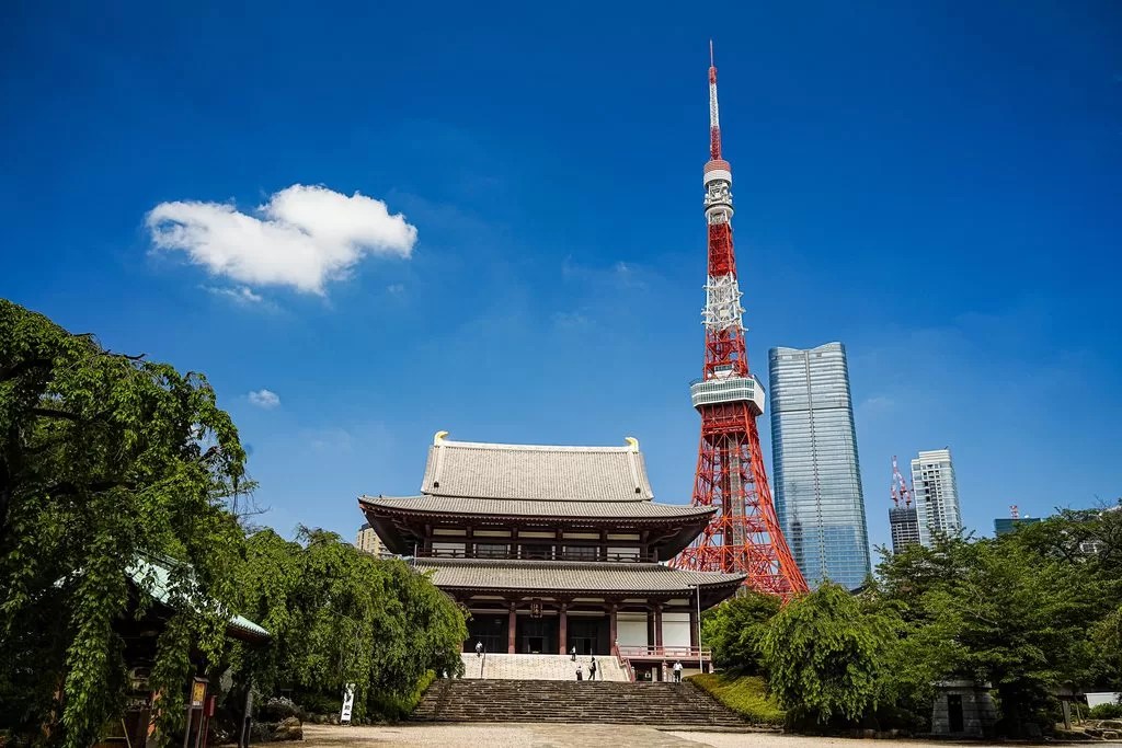 從虎之門往芝公園方向走去,會經過淨土宗大本山-增上寺。該寺也是德川家的菩提寺,原本整個芝公園都是增上寺的腹地。
